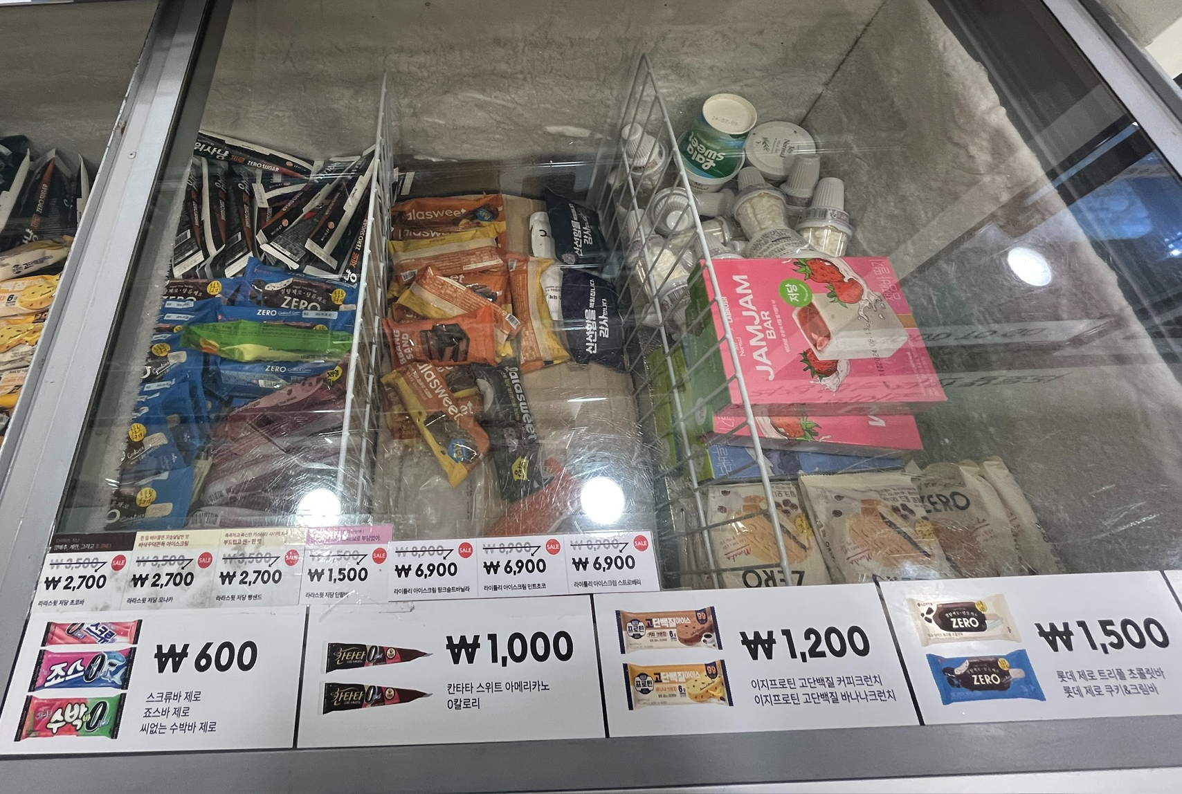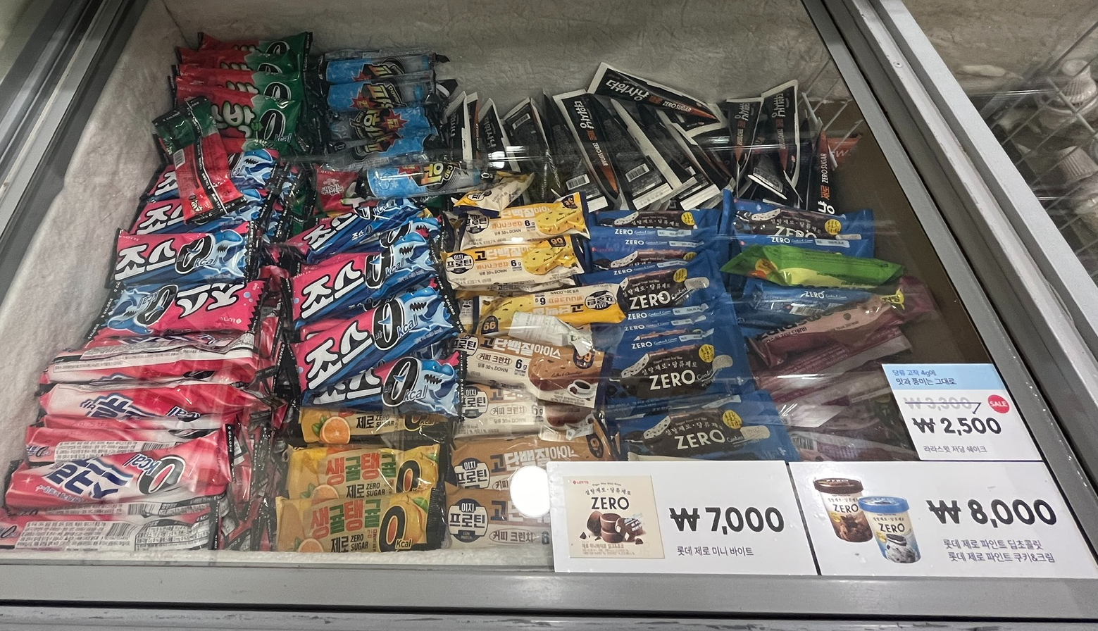 제로칼로리 아이스크림을 다 모아둔곳이라 착각할 만큼 온통 제로칼로리 아이스림으로 가득한 냉동고!