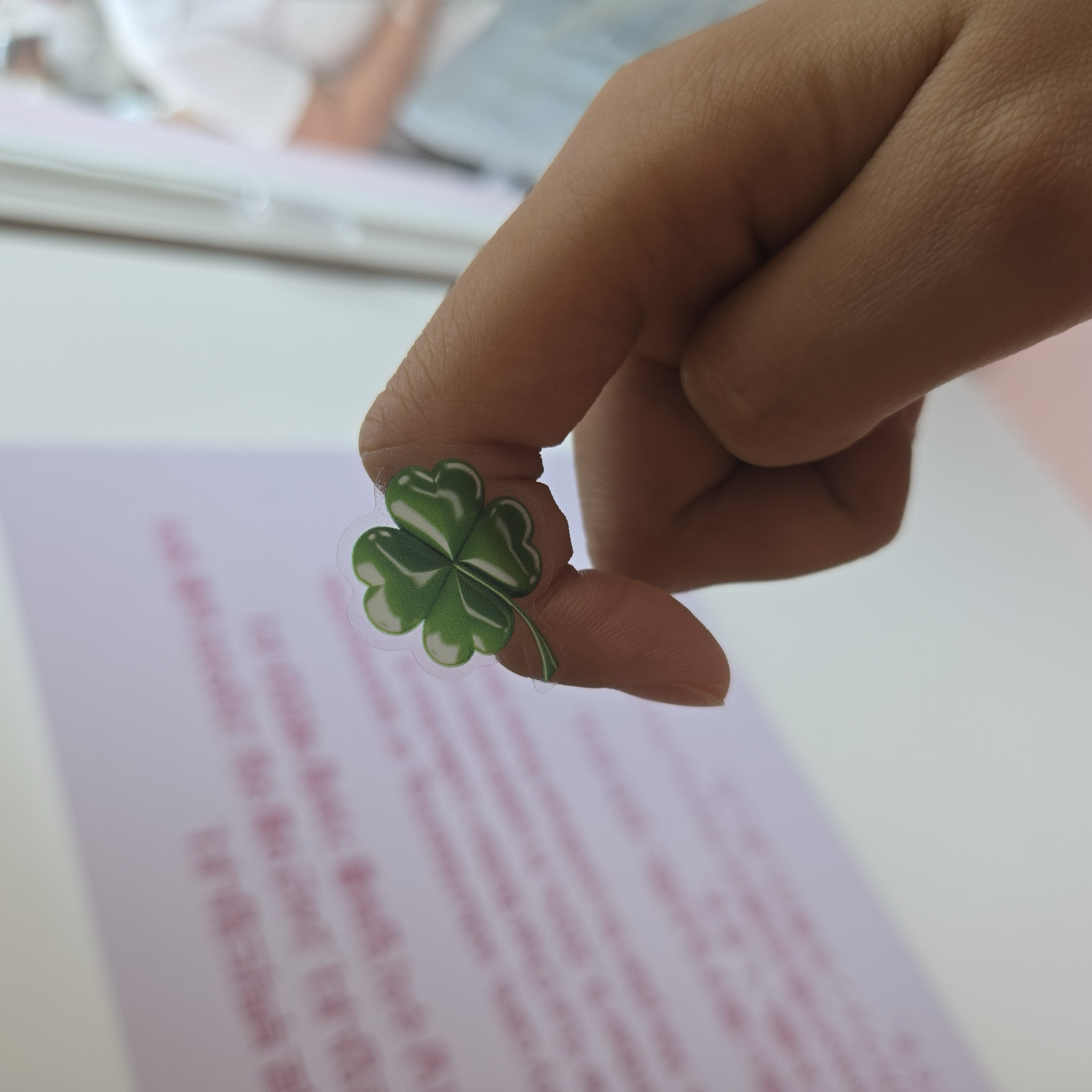 고양이 옆, 행운의 네잎클로버 스티커를 붙인 후 스태프에게 "냥냥"을 외치면 포춘쿠키 획득!