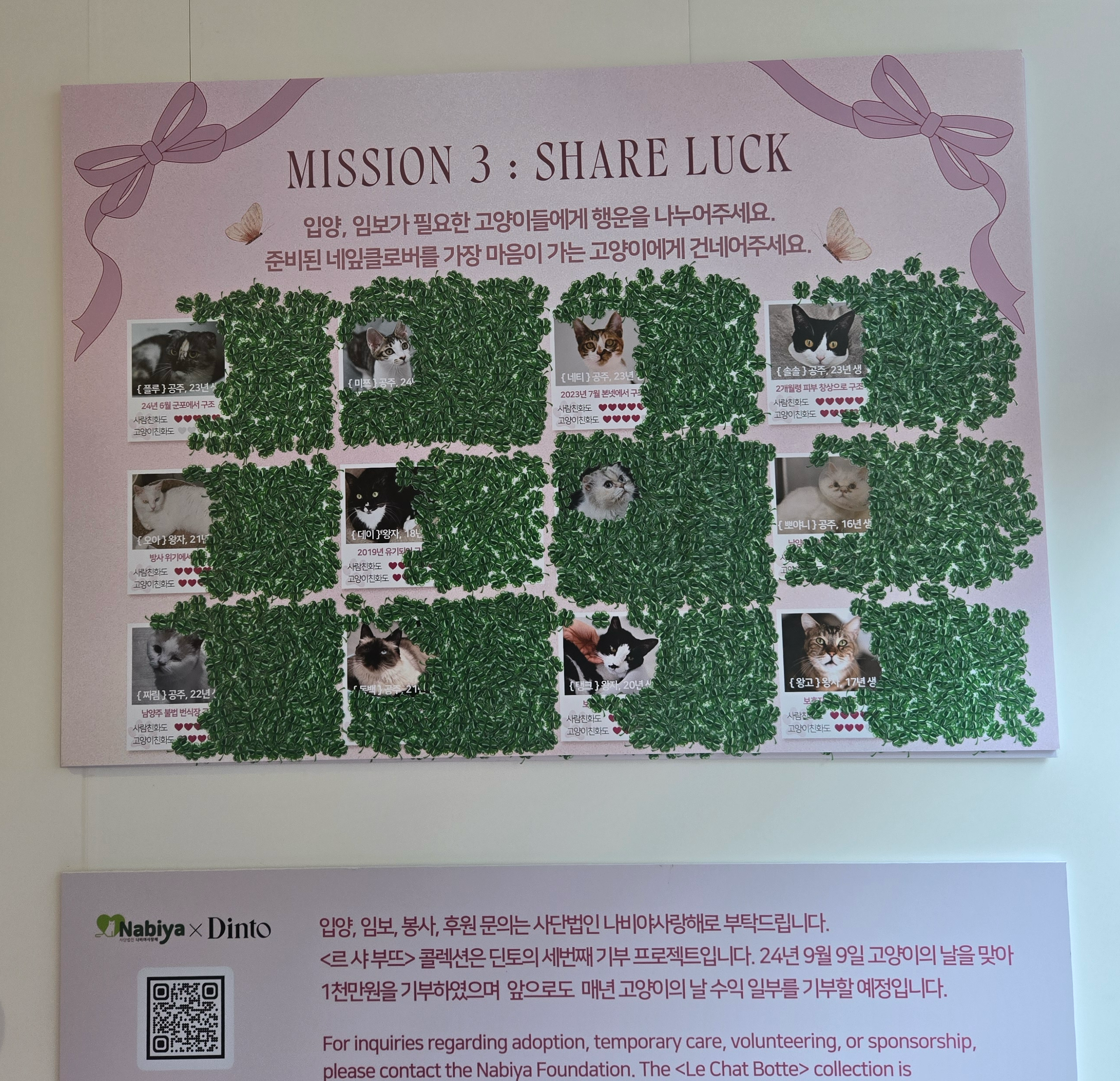 딘토의 2번째 팝업, 사단법인 "나비야사랑해" 고양이 구조단체와 함께 협업해서 함께 진행한 기부 프로젝트라고 합니다.