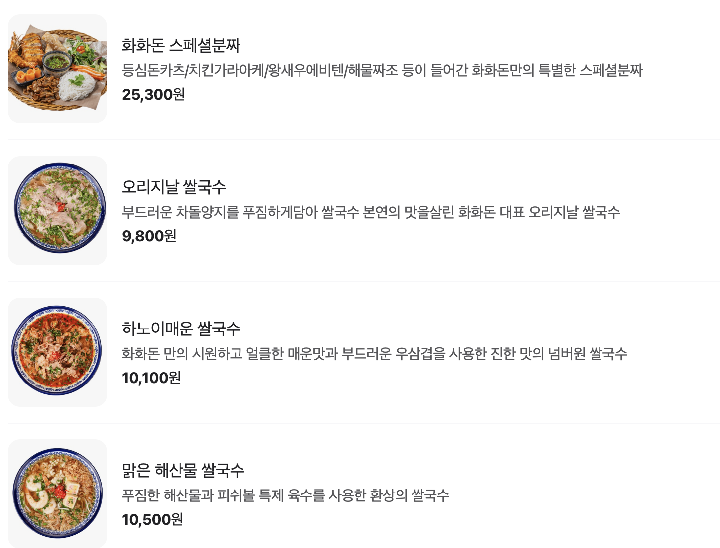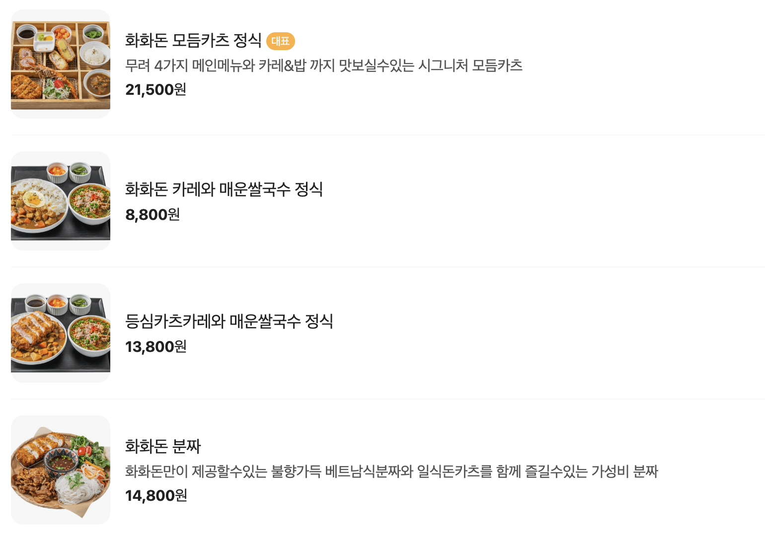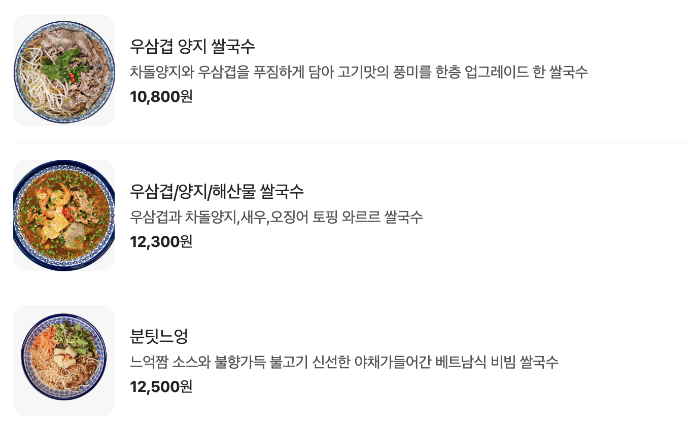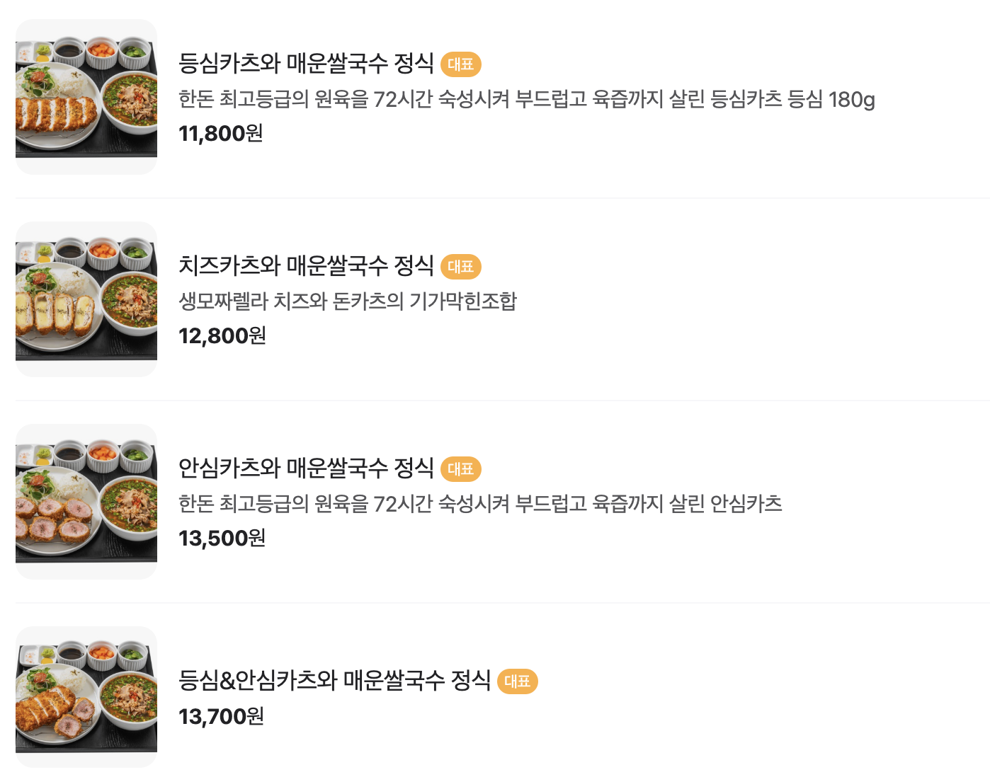 메뉴를 보면 아시안음식이 많은데 쌀국수 단품 말고 돈가스 단품도 만들어주세요!!