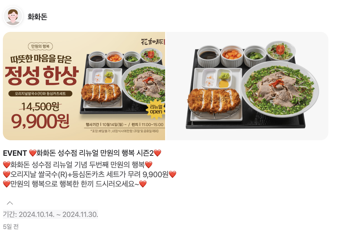 2024년 10월 14일 ~ 2024년 11월 30일까지 점심 이벤트를 한다고 합니다.