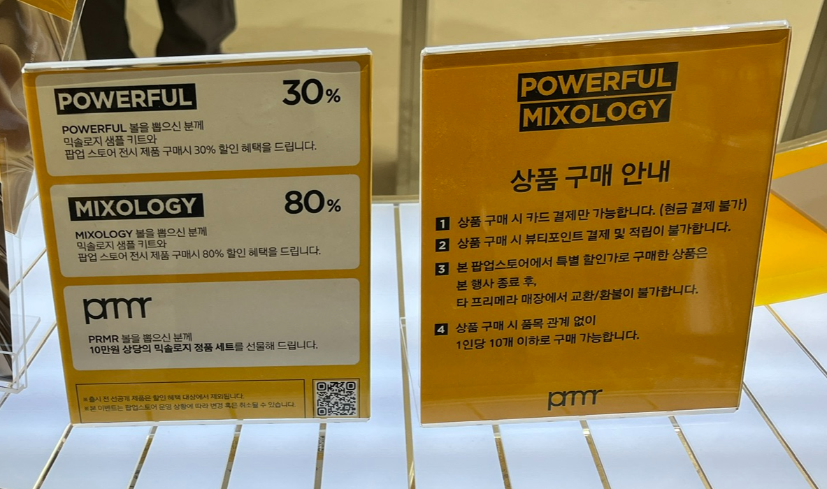 한 가지 아쉬운 점은 다른 팝업은 화장품에 대한 설명이 있지만