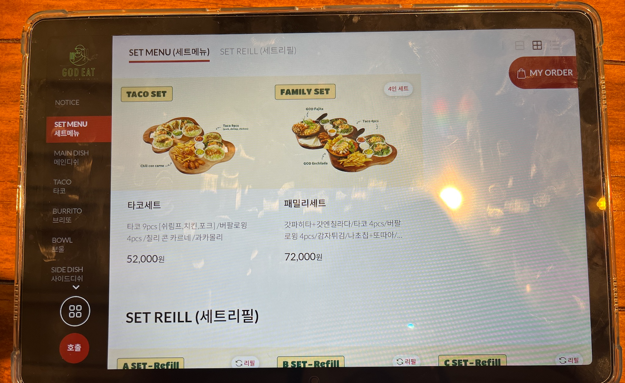 B세트에서 타코를 3개의 메뉴 중에서 1개를 선택할 수 있는데요,