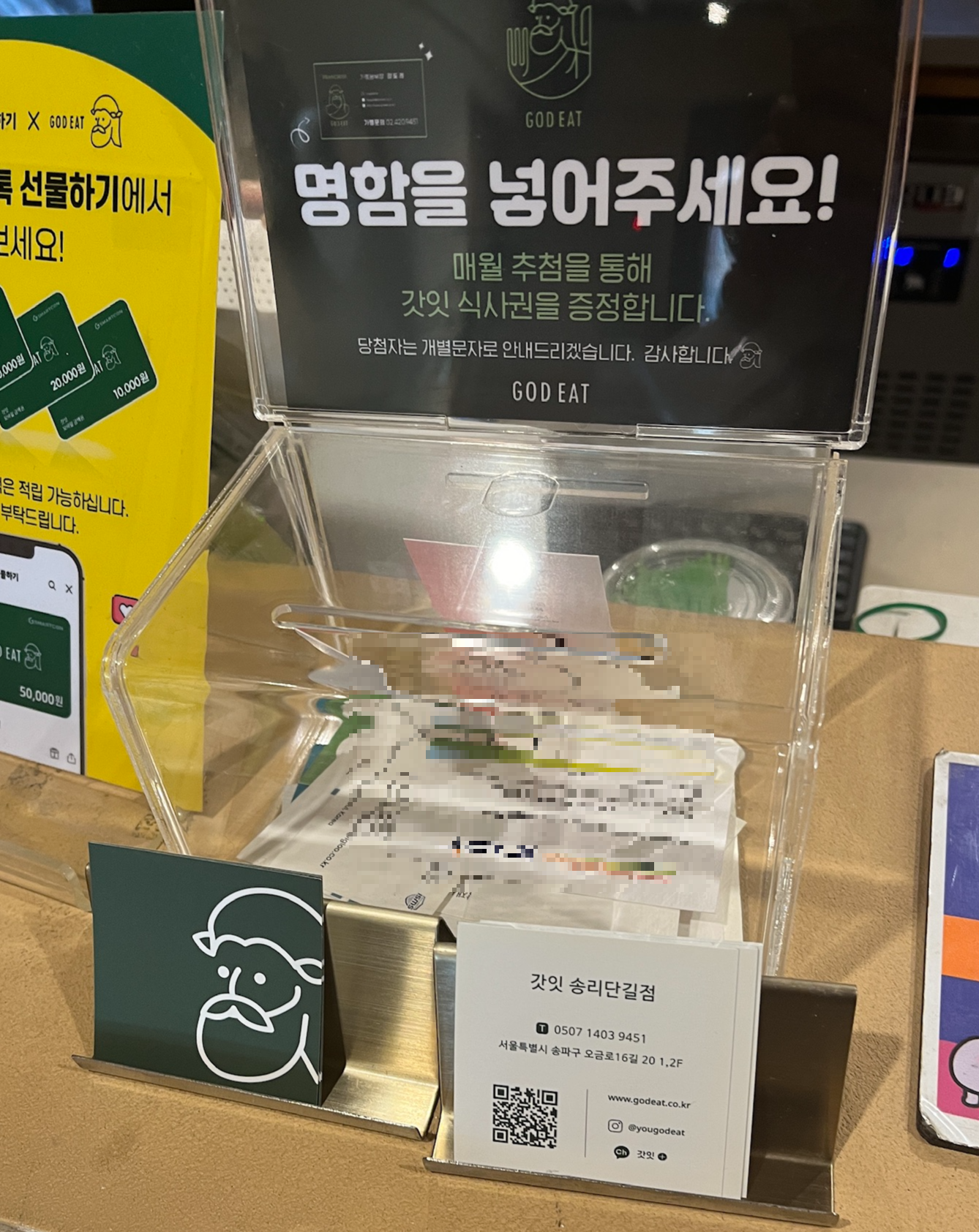 식사 후 명함이 있다면 한 번 넣어보세요!