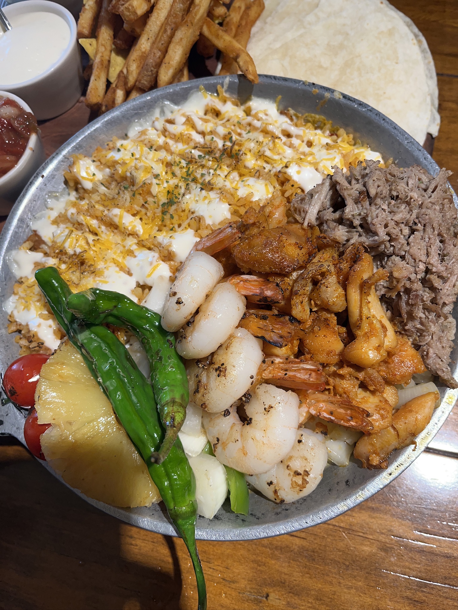 쉬림프, 포크, 치킨 중에서 쉬림프를 선택했습니다.