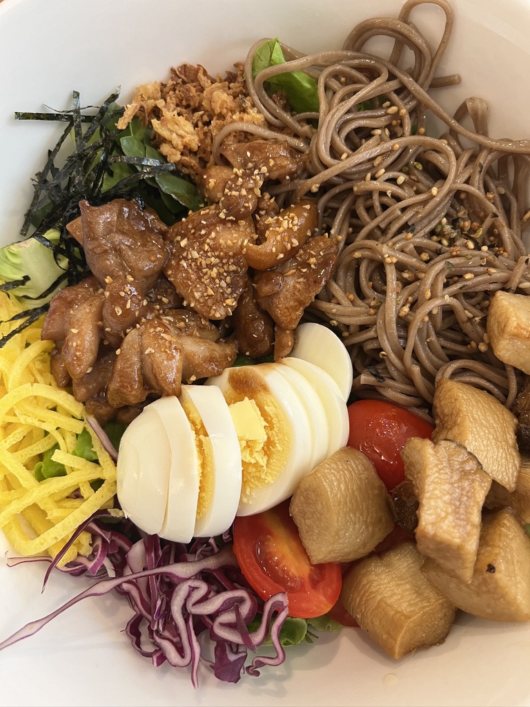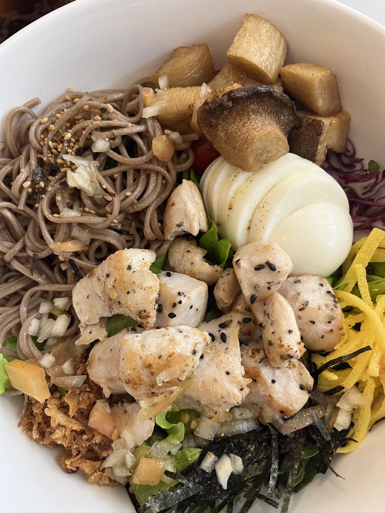 ✔️그릴드 치킨 포케 샐러드는 메밀면에 삶은 계란을 추가하고 드레싱은 렌치소스를 선택했습니다.