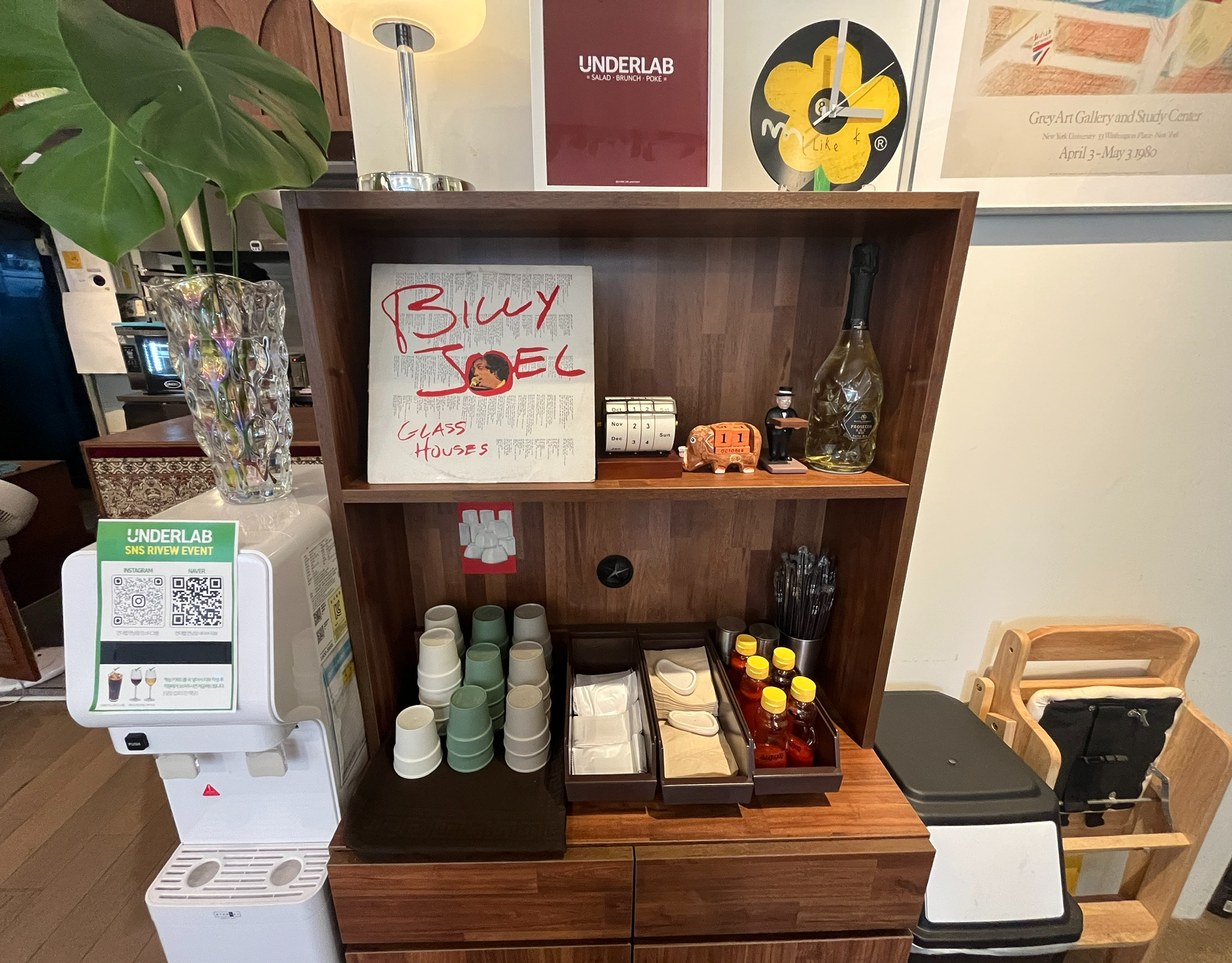 물과 물티슈, 휴지, 소스는 셀프바에서 이용이 가능하고